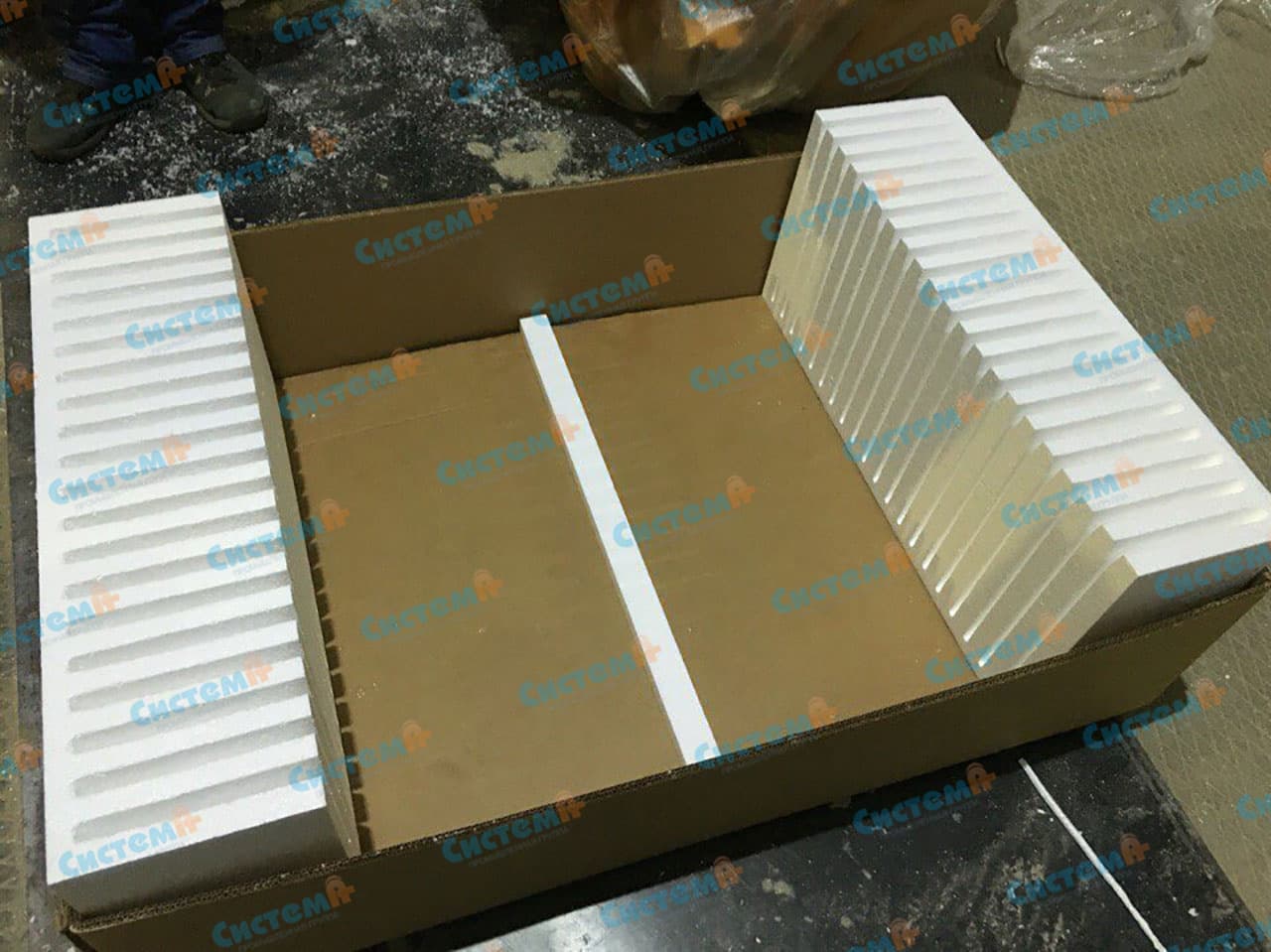 Хрупкие тонкие предметы удобнее всего перевозить зафиксированными в безопасном положении и с установленными защитными элементами по периметру и углам. Для того, чтобы достичь этого, наши инженеры разрабатывают полимерные вкладыши по индивидуальным параметрам. Эти изделия могут удержать одновременно несколько стеклянных листов. В дополнение к ним используются вспененные уголки и профили. Вся эта конструкция собирается воедино с помощью картонной коробки.