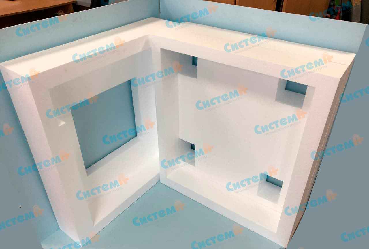 Заказчик предоставил рабочие чертежи, которые мы адаптировали для работы на наших автоматизированных станках. Конфигурация короба несложная, поэтому способом производства выбрали контурную резку. Эта технология отлично подходит для обработки вспененных полимеров с мелкопористой структурой – резы получаются ровные и чистые.